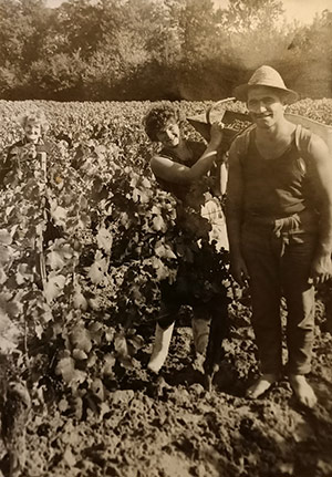 Vendanges à la main par les parents de Serge Forcato, Reine et Arronne Forcato, dans les années 50.